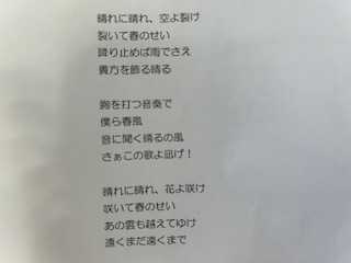 「晴る」という曲、生徒の皆さんは知っている人も多そうでしたが、簡潔なのに歌詞の意味が深くて、思わず聴き入ってしまいました。