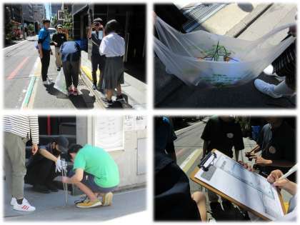雨のあと空がきれいに晴れたこの日、みんな熱心にごみを拾っていました。「御池通の植込みに大きくてたくさんのごみが捨てられていた」「駐車場のすきまにも多い」「やっぱりたばこが多いかな」そんな感想を聞きました。