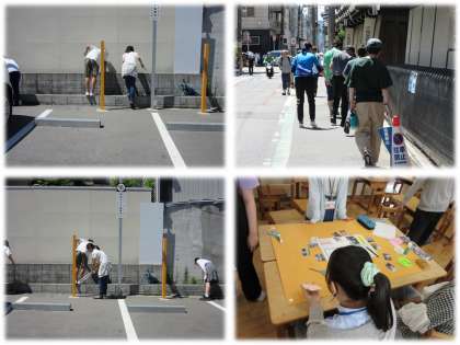 29日の午後は、洛風中学校のある初音学区の清掃活動をしました。東西には烏丸通から富小路通、南北には御池通から六角通までをウイングごとにごみ袋と火はさみをもってごみ拾いをします。