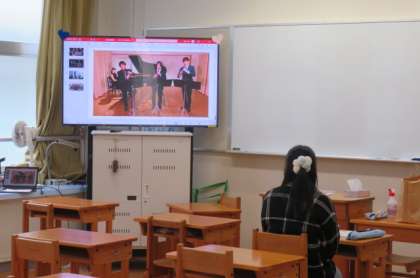 のどかな音色が聞こえてくると思ったら、こちらはリコーダーアンサンブルの映像鑑賞中でした。(音楽)