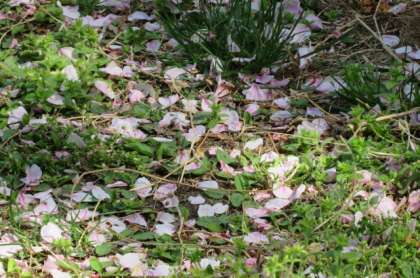 今朝は学校周辺が花びらの絨毯のようになっていましたね。