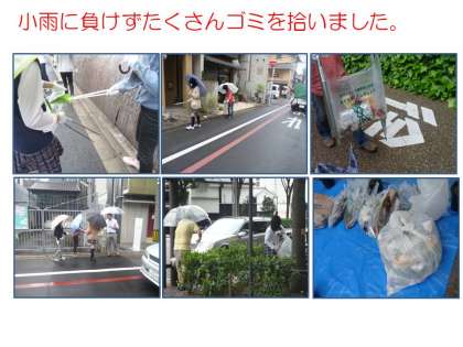 28日の午後、小雨の中予定通り「ゴミ0運動」を実施しました。ウイングごとに考えたスローガンを胸に、学校周辺で協力してゴミを拾うことができました。