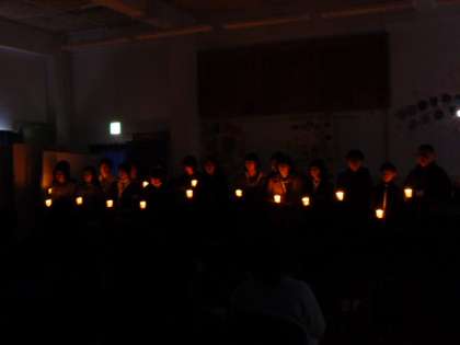 1年生が、サプライズでクリスマスの歌を歌ってくれました。温かなキャンドルのあかりの中、すてきな歌声で一年を締めくくってくれました。