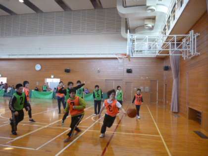 1・2年生は、スポーツ大会でバスケットボールをしました。