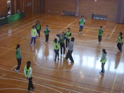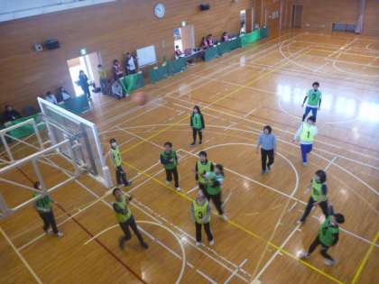 1・2限に卒業式の紅白幕やシートの片付けをしてくれた後、スポーツ大会を楽しみました。ウオーミングアップの鬼ごっこの後、バスケットボールをしました。