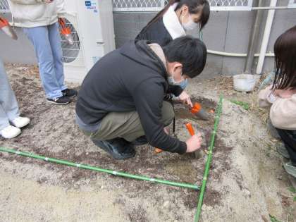これから水をやります。ときどき様子をぜひ見にいってくださいね。洛風みんなで育てて春を楽しみに待ちたいですね。