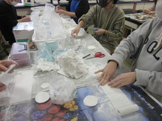 秋からの入試も、多くの3年生が終えつつある今日、午後はあかり展の作品、卒業制作の「ロッカーのナンバープレート」を制作しました。
