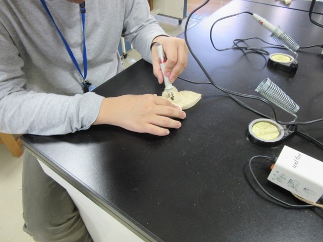 あかり展は、ランプシェードの型紙つくり、石膏テープを小さく切って袋つめ。ロッカーのナンパープレートは、電動のこぎりで、葉っぱの形に切る、やすりをかける、焼きごてで焼いていく。それぞれの作業をたくさんのスタッフとともに楽しく進めています。