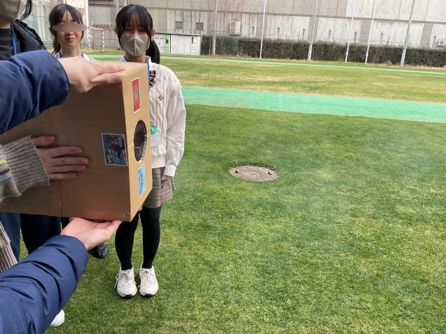 威勢のいい音がすると思ったら、グラウンドで空気砲の実験中でした。