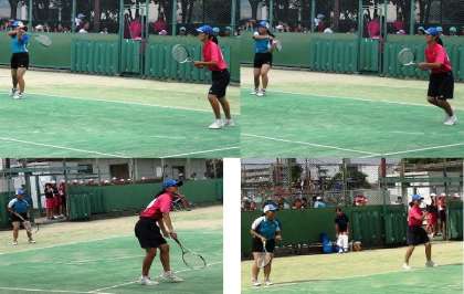 I,Kさん〈3年)とU,Kさん〈3年)のペアとY,Aさん(3年)とT,Kさん〈2年)のペアーは,共に1回戦を勝ち,2回戦まで進出しました。