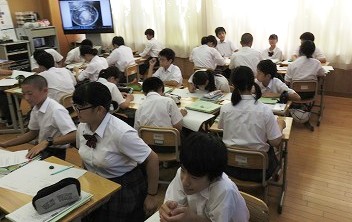 2-6の理科の授業の様子です。少し発展的な内容ですが,生徒達は一生懸命に考えていました。3日間の校内研究DAYSはこれで終了しましたが,今回の成果も踏まえ,一層の授業改善に努めていきたいところです。11月の研究報告会でも良い報告ができればと思っています。