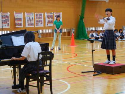 ほかのクラスの歌声を聴くのも初めてで、「あそこのクラスはよく声が出ていたな」など、他クラスの出来を意識し、これからのクラス練習の意気も上がることと思います。まだまだ、どこか一番か比較できない状況で、本番が楽しみです。