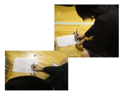 生徒の中には、「中央の写真」のように、話を聞きながらメモをとる姿も、見られました。