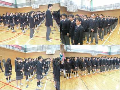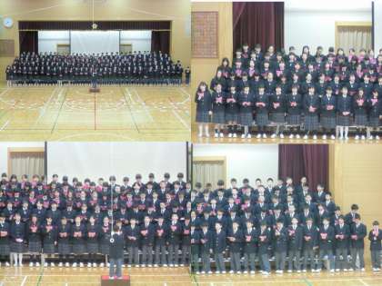 13日2時間目、『1年生を迎える会』が行われました。2・3年生は「1年生が安心して、下京中での生活が送れるように」との思いを込めて、群読と合唱の発表をしました。「さすがに上級生はスゴイ!」と1年生に感じてもらえる合唱でした。1年生も入学してすぐの、あまり時間のない中、群読と合唱に取り組んでくれました。新入生らしく、元気いっぱいの「光れ」の合唱でした。今日、初めて全校生徒が体育館に集まり、新たな下中の「絆」が生まれました。