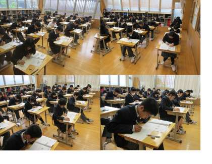 4月17日(火)全国一斉に「平成30年度 全国学力・学習状況調査」が実施され,下京中3年生も調査に臨みました。例年の国語A・国語B・数学A・数学B・生徒質問用紙に加え,今年は4年ぶりに理科も実施され,1限から6限まで通して実施されました。3年生は修学旅行前日でしたが,全員,時間いっぱい一生懸命取り組んでいました。
