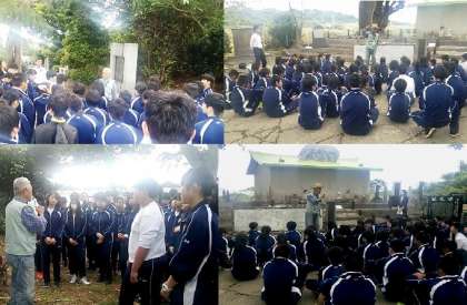 平和学習の一環として,陸軍病院壕,アンティラ ガマを訪れ,現地のガイドさんから話を聞きました。ここは元々、近くの住人が避難されていたが、その後、砲兵部隊が来て住人は全員出されたそうです。部隊が全滅した後、また住人も敗残兵が入ったそうです。