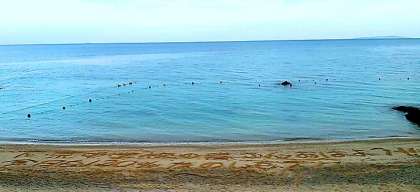3日目の朝食風景と,浜辺の様子です。京も誰かが砂浜に落書きをしているようです……。
