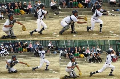 5月3日(木),春季総合体育大会 軟式野球競技,下京中学校は殿田グランドで初戦を迎えました。前日からの雨でグランドコンディションが悪く,試合開始は4時間遅れの午後1時となりました。加茂川中学校相手に,粘り強く戦いましたが,0対7のコールド負けを喫しました。夏の大会に向けて,心機一転頑張ります。