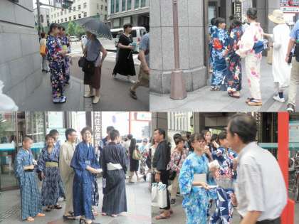 本日13日は『ゆかた登校』日です。3年生の生徒達も朝早くから、各家庭で着付けてくる生徒、学校で女性会や支え隊の皆様にゆかたを着付けていただき、みんなゆかた姿です。普段とまったく雰囲気が違い、生徒達も嬉しそうです。各クラスで記念撮影の後、四条烏丸で、生徒達がつくったメッセージカード入りティッシュを配布しに行きました。