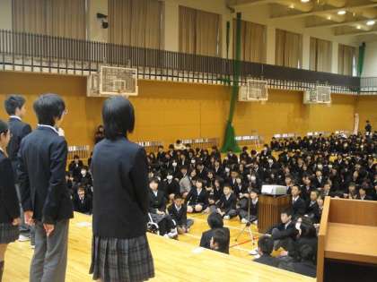 全校生徒に支えられ活動を進める生徒会役員の、熱い思いがこめられた集会でした。さらなる躍進を誓い合い、次回の集会への期待も強く感じられました。