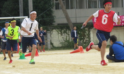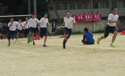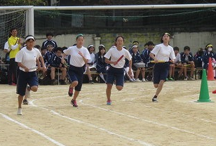 途中、転倒してしまう生徒や、2人3脚借り物競走で,なかなか借り物が見つからないペアも、諦めずに最後まで、懸命に走りました。