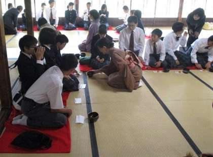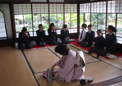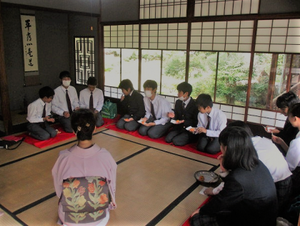 昨日からの雨も上がり,落ち着いた庭園に囲まれた,涉成園での体験,おそらく他の中学校では実施されていないとても貴重な体験でした。大半の生徒は自作の茶碗を持ち帰りますので,是非ともご家族で鑑賞してください。