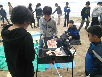 学年レクも終わり,野外炊飯が始まりました。メンバーと協力しておいしい焼きそばを作ってほしいものです。みんなで作った焼きそば,きっと最高の味ではないでしょうか。
