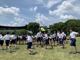 昼からは梅小路公園で学年レクです。クラス対抗で『波乗りジョニー』で競います。クラスで心を合わせて少しでも早くなるよう頑張っています。結果はどうだったでしょうか。