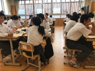 本日下京中学ではオープンスクールを実施しております。目標を明示した対話活動を取り入れた授業を行っています。11時35分まで授業参観を行っておりますのでぜひお越しください。