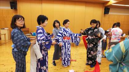 ゆかた登校に向けて,6月26日(水)PTAのゆかた着付け教室が行われました。長年,映画やテレビの世界で着付けをされてきた講師の方の指導の下,多くの方がゆかたの着付け方,着せ方,たたみ方を学びました。初めての方から経験豊かな方まで,熱心に学んでおられました。ゆかた登校の日にはいろいろと世話になりますが,よろしくお願いします。