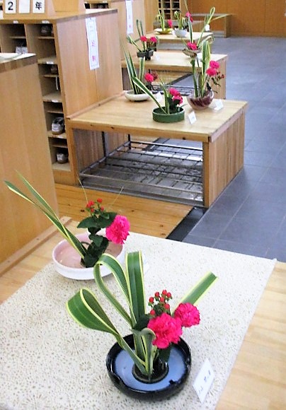 伝統文化部の皆さんの生け花が玄関を美しく飾ってくれています。毎月,季節の花を美しく生けてくれています。懇談会に来校された時,ゆかた登校でお手伝いに来ていただいた時に是非,ご覧ください。