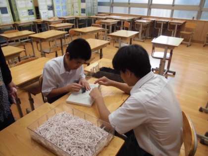 文化祭に向けて,1年生は「つまようじアート」に取り組んでいます。