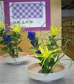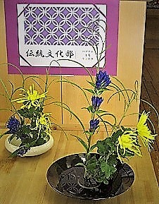 学校祭を前に,伝統文化部の人たちが,きれいに花を生けてくれました。