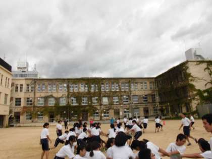 4日,1・2時間目に体育の部の学年練習を行いました。準備運動から始まり、各種目のエントリーの確認や入退場、競技のルールなどを確認しました。学年種目「縄引き」では、実際に競技を行いました。クラスで力を合わせ、声を掛け合い「縄」を自陣に取り込んできます。