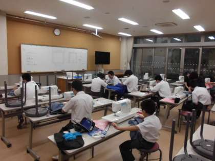 3時間目の家庭の授業の様子です。カバンを作っています。ミシンを使って丁寧に作業を進めています。難しいことは協力して解決しています。完成が楽しみです。