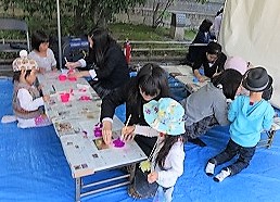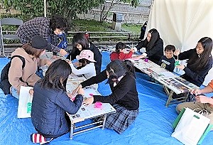 美術部,伝統文化部の開いてくれたブースにはたくさんの子どもたちが集まってくれました。