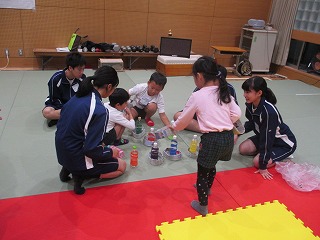 19日(火)は3年2組の生徒が池坊保育園の園児を迎えて,保育実習を行いました。交流のはじめから,かなり打ち解けた様子で,一緒に遊んだりして楽しい時間を過ごしました。