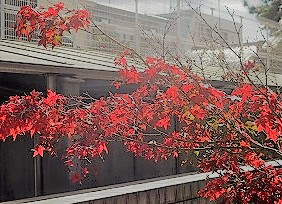 11月も下旬に入り,秋が深まってきました。校地いっぱいに校舎が建っているために,緑の少ない学校ではありますが,数少ない木々が色づいています。学校の東南隅の中庭植えられているもみじが紅葉しています。