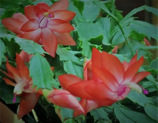 師走に入り,シャコバサボテン(クリスマスカクタスともデンマークカクタスとも)が,咲いています。玄関の靴箱の上で,咲いていますので,学校に来られたときにはご覧ください。数日間は咲いているはずです。
