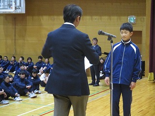 校長先生のお話では,新年を迎えての決意,目標を持つことの大切さ,花の期の命名の由来,「花」とは何を指すのか,自分の意見をもつことと,自分の考えを表現することと,自分の目標に向かって行動することの大切さ,そして自分の人生は自分が決めること,自分の力で未来を切り拓くこと,「これ」を身につけたと言える学年末にしようという話を,生徒会のキャッチフレーズを交え,話されました。最後に,12月末から赴任された英語科の湯浅先生の紹介がありました。