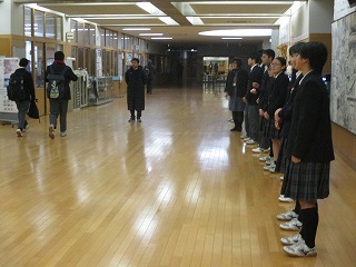 あいさつ運動の3日目を向かえました。今朝も寒い中,生活委員の人たちはしっかりとあいさつ運動を展開してくれていました。暖冬傾向とは言え,冷え込む朝,頑張ってくれています。お互いに元気に挨拶を交わして,気分の良い一日のスタートにしましょう。