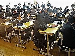 1年を通して,視察や見学,実習,現場体験,インターンシップと多くの先生方や教育関係者,大学生の訪問を受ける下京中学校ですが,今日は京都市教育委員会の第14期京都教師塾のフィールドワークが行われ,1年5組の道徳(牧野先生)の公開授業参観と事後交流会が実施されました。12名の塾生と4名の教師塾関係者の皆さんが,熱心に参観,交流をされていました。将来の教員を目指す皆さん,今日の公開授業を参考にして,是非,夢を実現させて,将来立派な教員になって下さい。