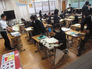 それぞれのクラスで,休業中の注意事項の説明や配布が行われていました。
