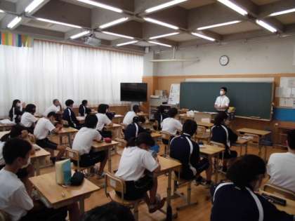 式のあとは生徒会より,夏休みに行われた「リーダー研修会」についての報告がありました。これからの生徒会の取組に期待します。