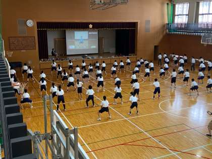 下の写真は一年生が体育の時間にダンスの基礎を練習しているところです。