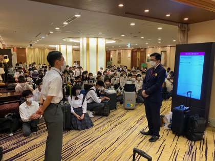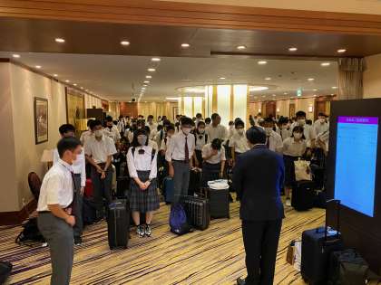 予定通り宿泊先ホテルを出発いたしました。お世話になったホテルの従業員の方々にご挨拶も行いました。