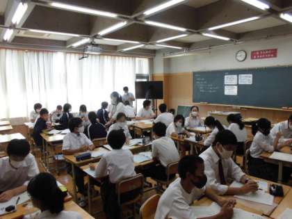各グループで設定したテーマをもとに立てた仮説の検証方法を検討しています。「どんな結果になるだろう。」「本当にそうなるかな。」「こういう場合はどうなるだろう。」と活発に意見の交流がなされていました。