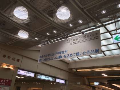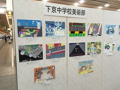 都心部の放置自転車をなくし,美しい街にしたいと願いを込めて描いた作品がゼスト御池に展示されています。下京中学美術部の作品で10月1日から7日まで展示されるので興味のある方はお立ち寄りください。