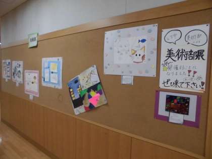 そこで,出品に向けて制作した作品を「下京中学校,美術部展」として,地下1階の掲示板を使って開いています。ぜひご鑑賞ください。