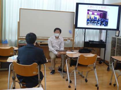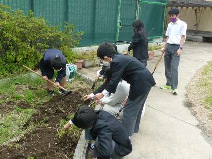 授業について説明を受けているクラスと,屋上の菜園を耕しているクラスに分かれていました。